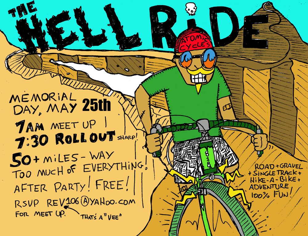 Many fun miles (about 13-14) on a vintage steed, I'm going to say 1994 This means No V-brakes, Clip in pedals, and a very limited selection of suspension, real riders would rock the full rigid. Carbon fiber? What's that? Bring your steel steed, your mullet, and some Oakley Blades, decked out in some neon and get ready to rumble!! Course should take 2-3 hours...more if you have not ridden your bike since it was new...