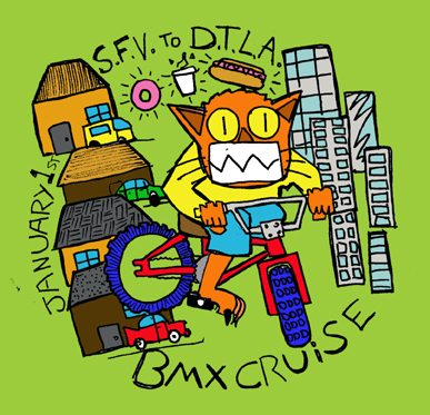 Every Tuesday we leave at 7:15 SHARP. Rain cancels. 24 and 26 BMX cruisers will be the bike of choice. You don’t have one? No problem. Ride what you got. Average mileage is 20. We stop somewhere for food.