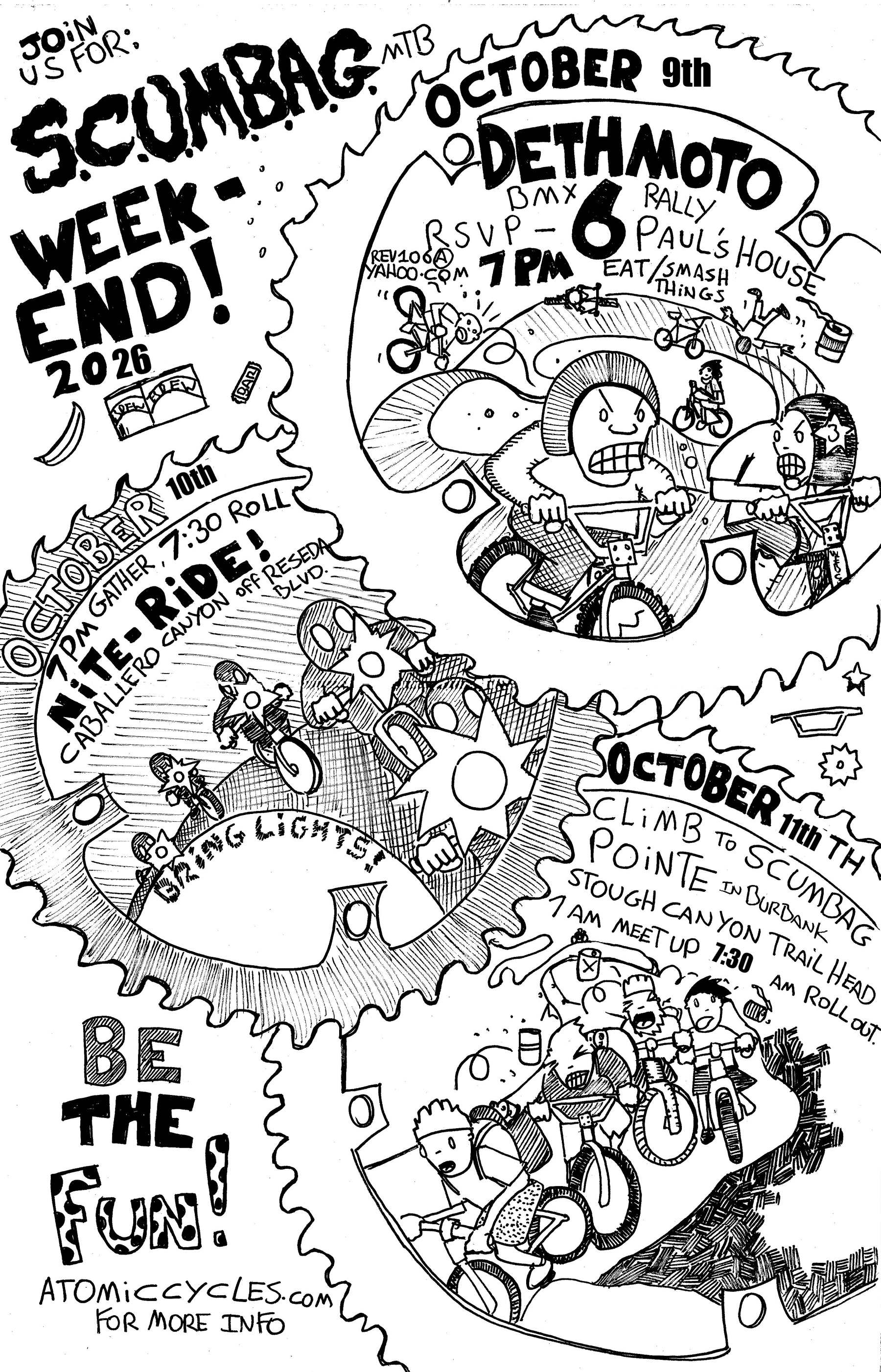 Every Tuesday we leave at 7:15 SHARP. Rain cancels. 24 and 26 BMX cruisers will be the bike of choice. You don’t have one? No problem. Ride what you got. Average mileage is 20, we go inthe dirt and climbing is near always involved. Oldest BMX ride in LA, the hardest and subsequently, the hardest. We stop somewhere for food.